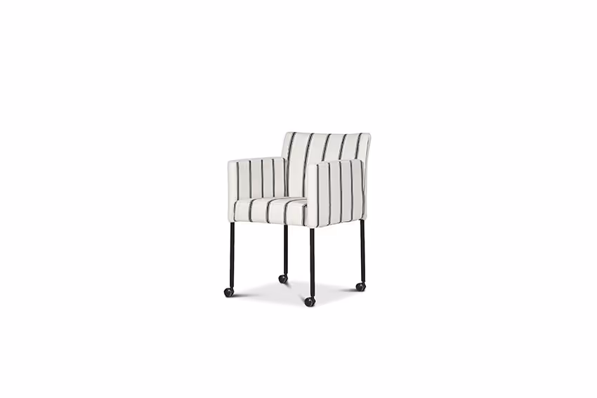 De Lucca stoel is kubistisch, elegant en tegelijkertijd zeer comfortabel. Door de wielen is de stoel makkelijk in gebruik. Het onderstel is verkrijgbaar in mat verchroomd of zwart staal. Ook leverbaar zonder wielen.