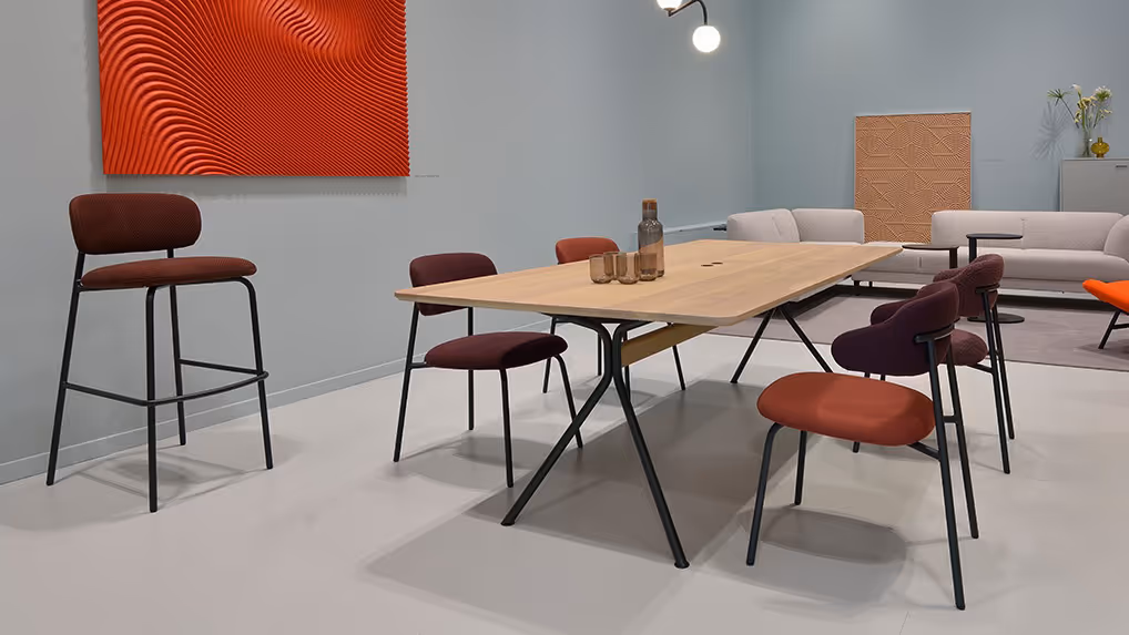 Het Aloa programma bestaat uit een stoel, een stoel met armleuning en drie barstoelen met een vaste zithoogte (60, 70 of 80 cm).