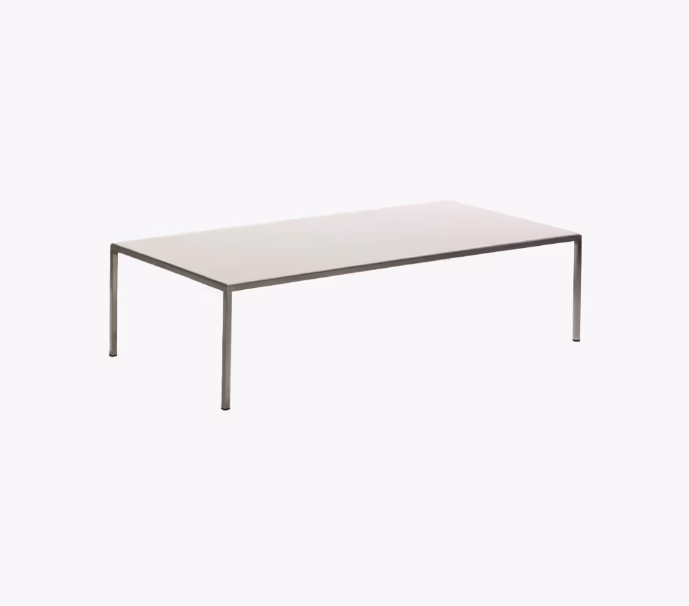 Materiaal: Onderstel: gelakt staal of RVS, 20 x 20 mm Blad: Keramiek Massief eiken (naturel gelakt of standaard beitskleur) Massief noten HPL Pfleiderer HPL Fenix (NTM collectie) Afmetingen: 80 x 80 x 36 cm 100 x 100 x 36 cm 140 x 70 x 36 cm Afwijkende maten / uitvoeringen op aanvraag